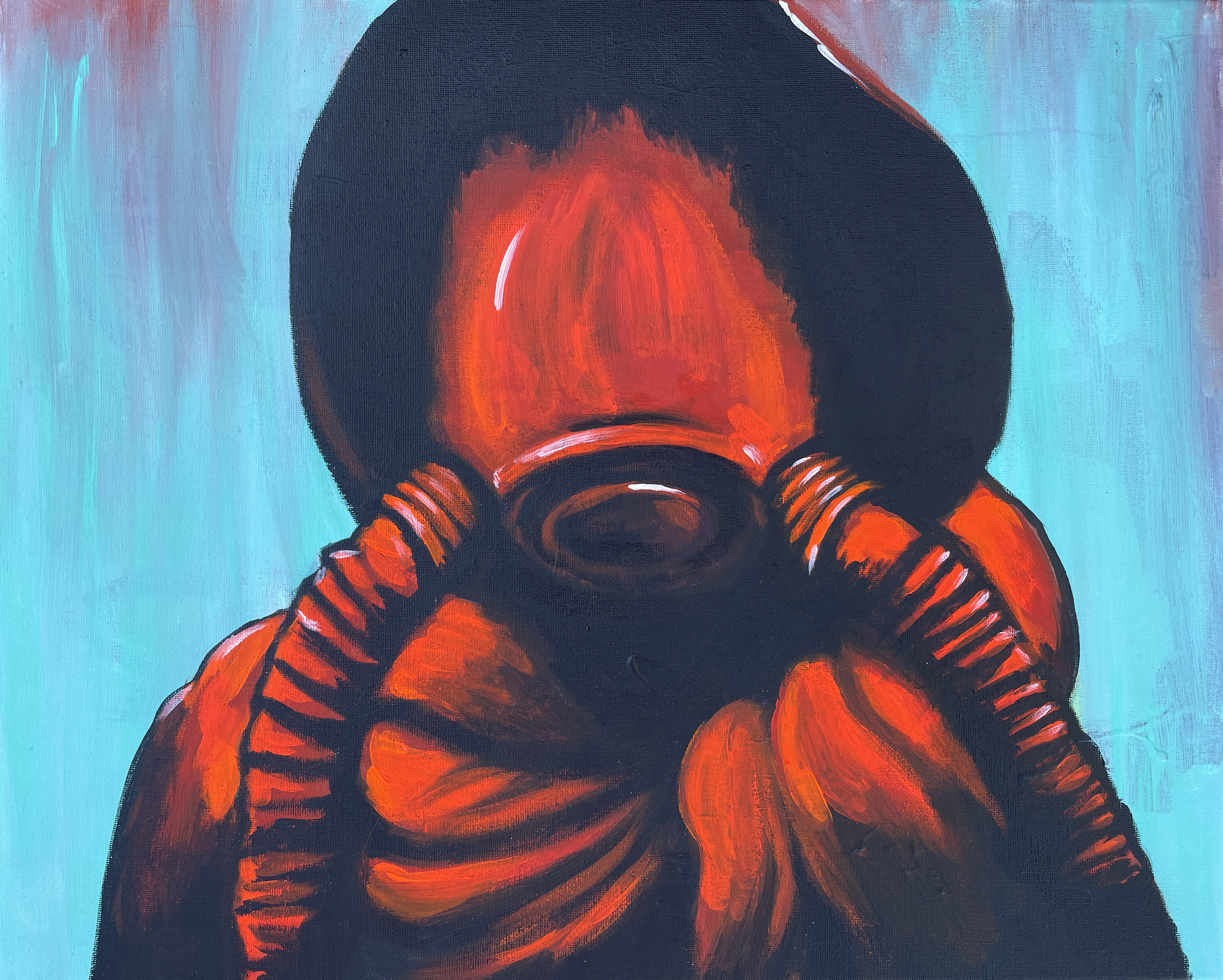 Gas Mask Future, Acrylic on Canvas – 20" x 16"